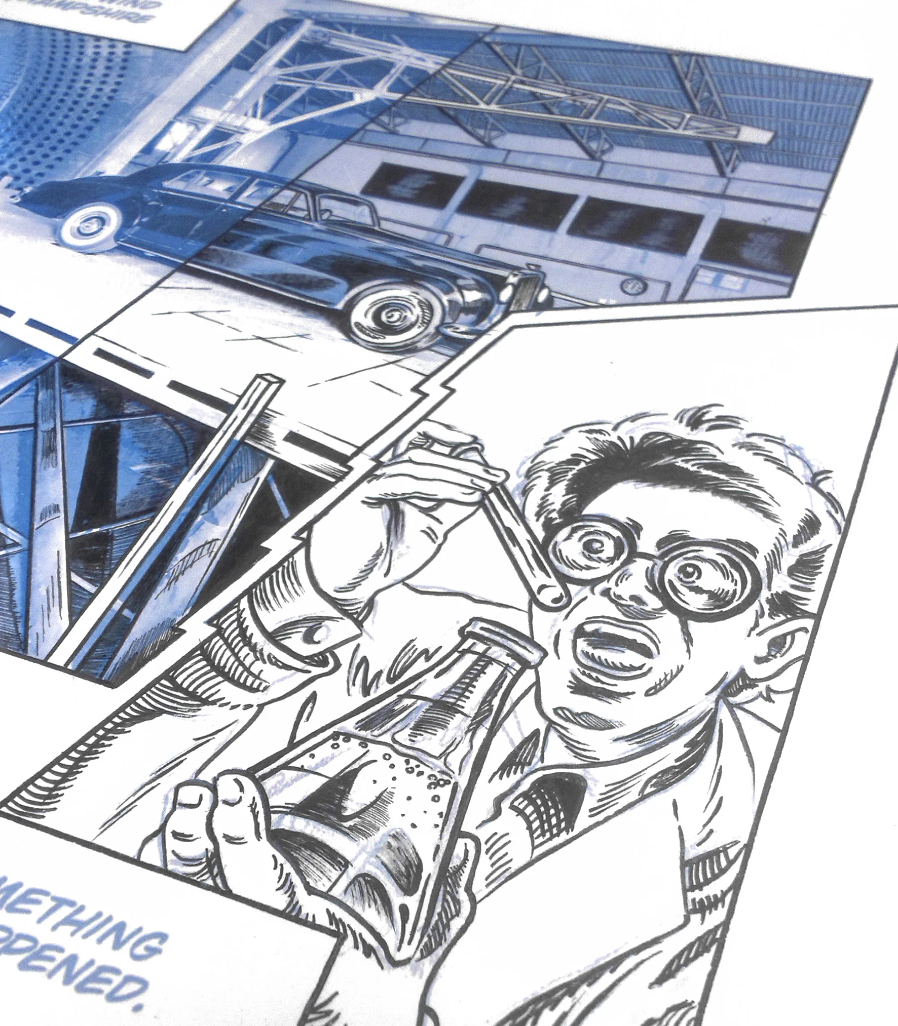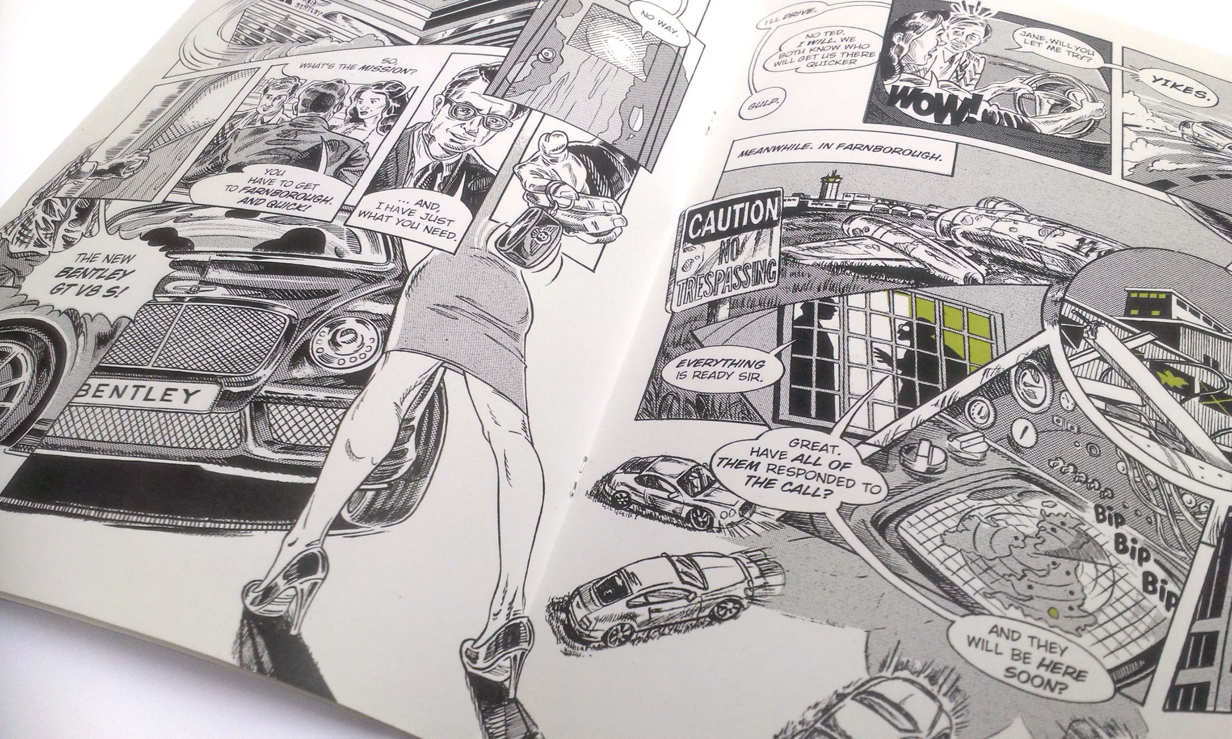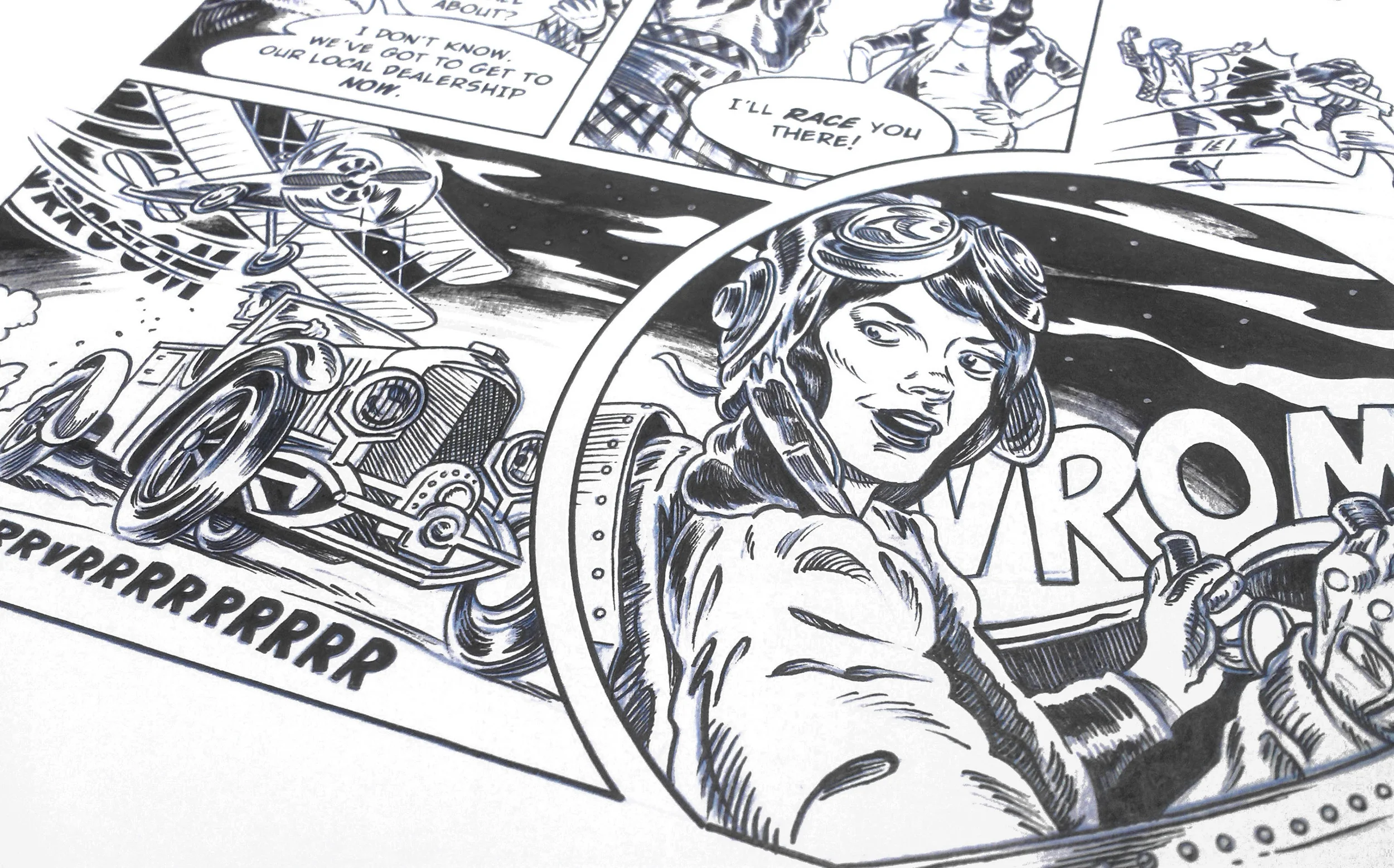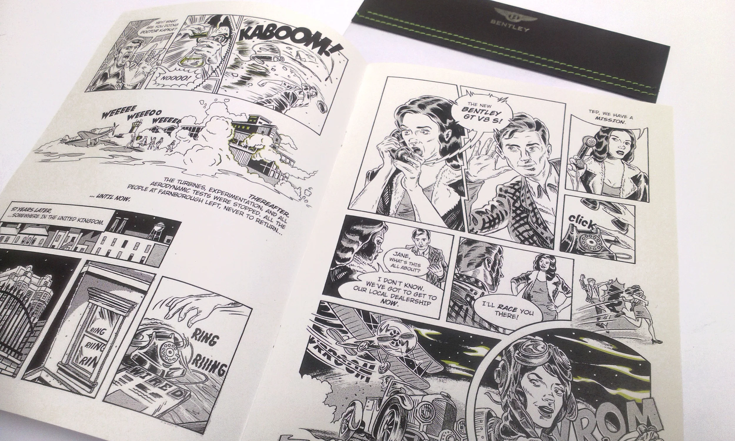 CuldeSac designed and developed the event, and we was responsible for the comic book invitation. One story in the purest golden age adventures comics style, which anticipates the plot, atmosphere and surprises. A Night Call that transformed the guests into superheroes who can relive their fantasies in the GT V8 S launch experience.