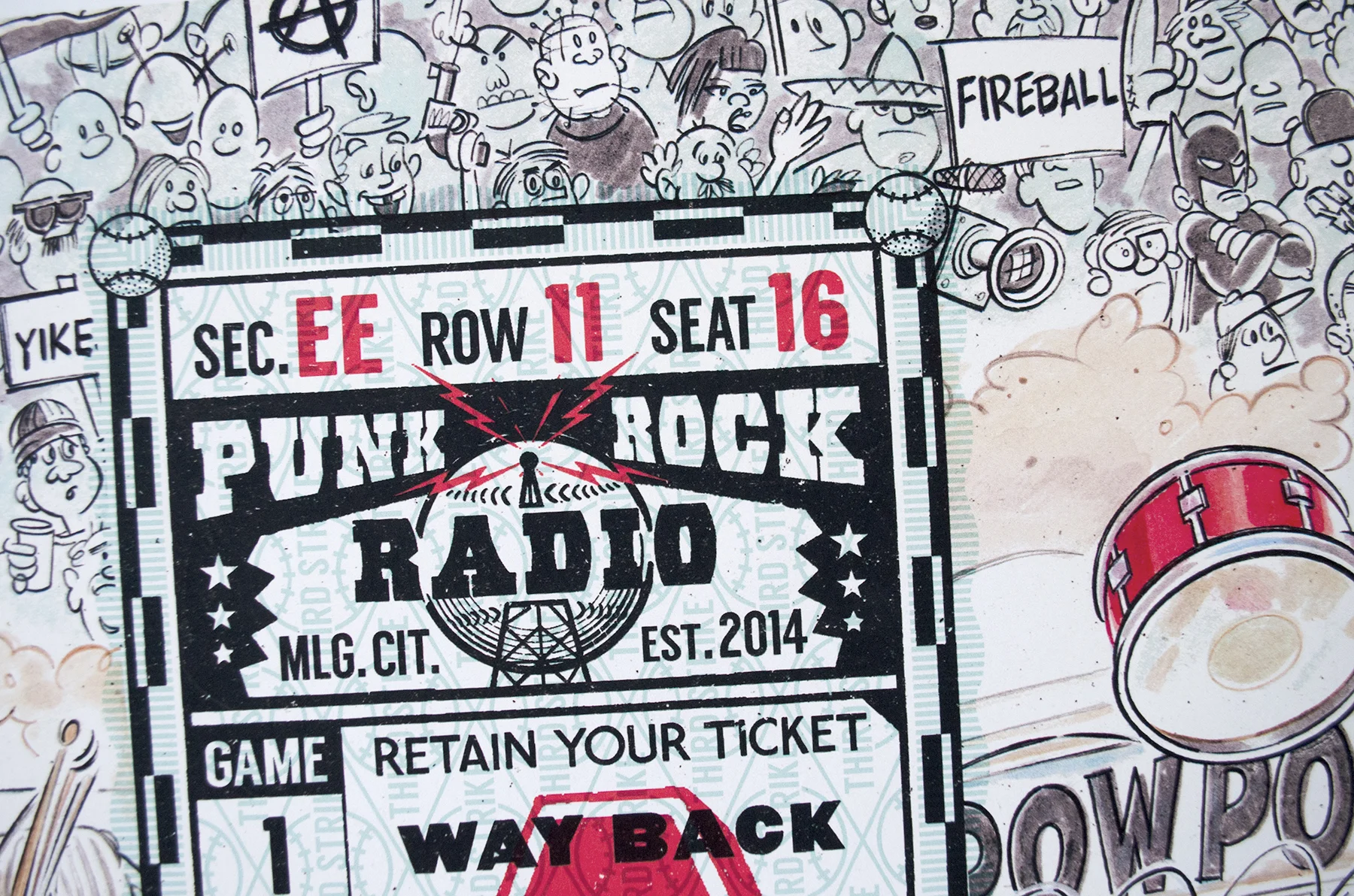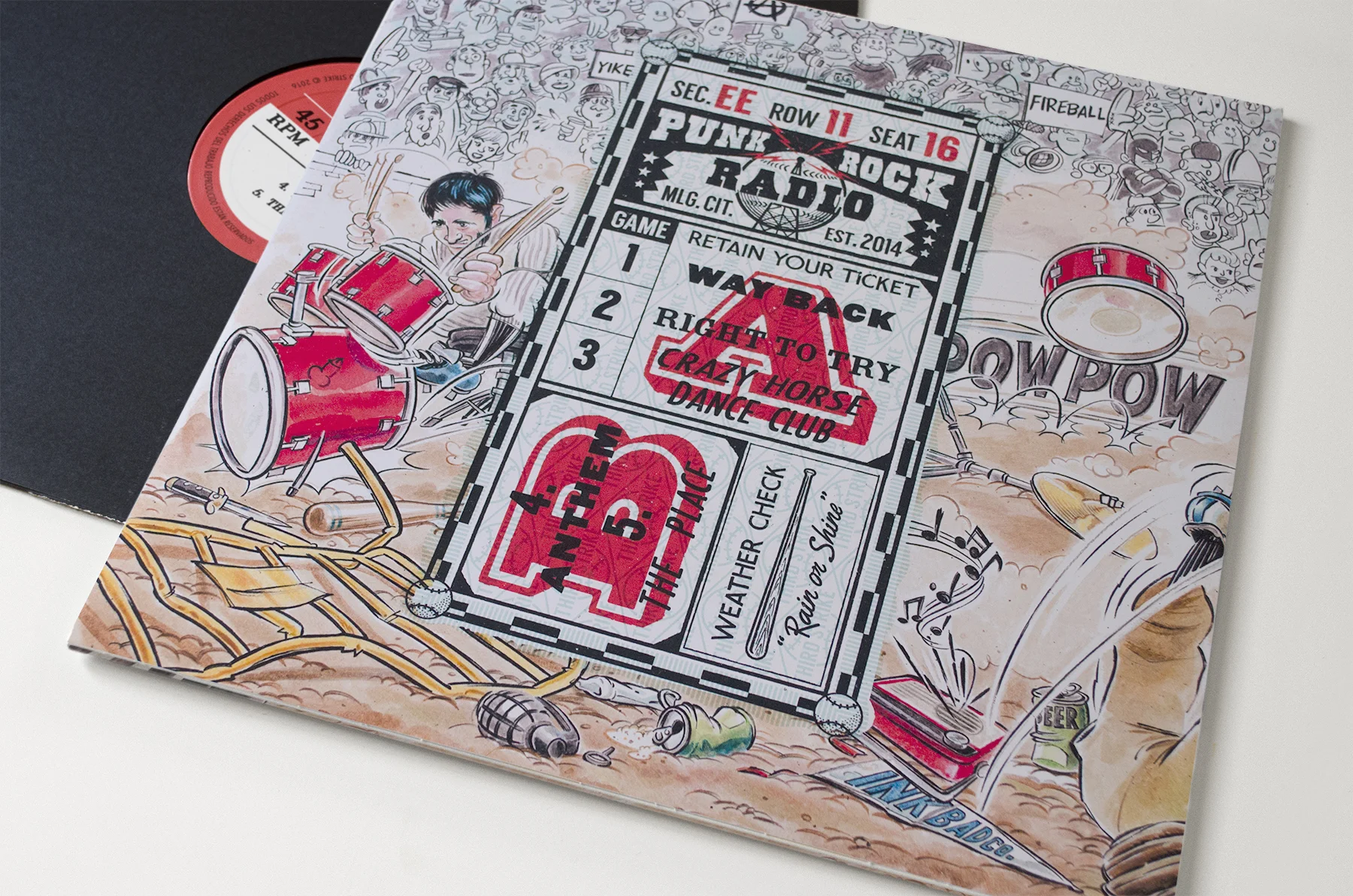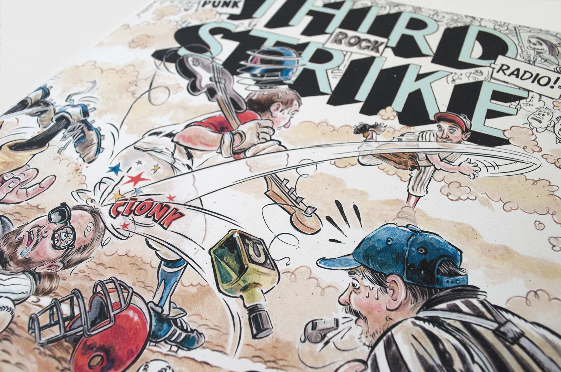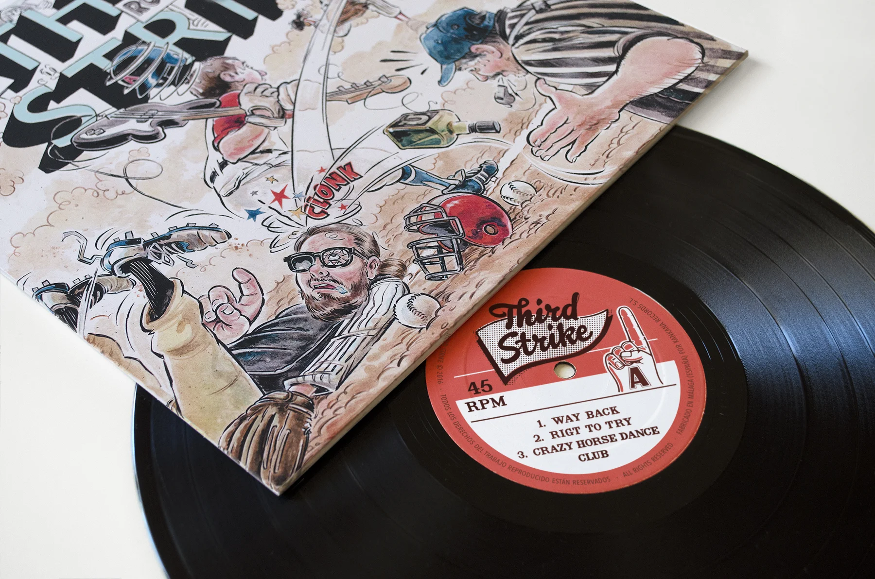 12 inch vinyl artwork for the spanish punk rock band: Third Strike. "Punk Rock Radio!” was released on February 2017, recorded in Málaga (Spain). A few months earlier the great Jack Davis had died, and we wanted to make a small tribute to one of our most favourite cartoonists of all times.
